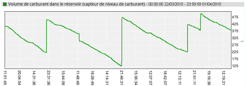 Possibilité de suivre les ravitaillements et les vidanges de carburant (volume, temps, lieu)